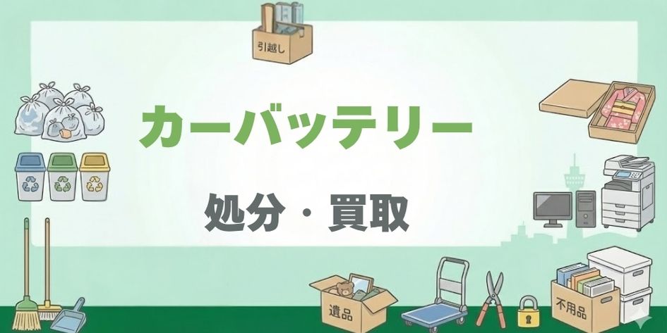 この記事では、カーバッテリーの処分方法・費用・注意事項をわかりやすく解説します。手間なく処分したい方は不用品回収業者の利用もおすすめです。