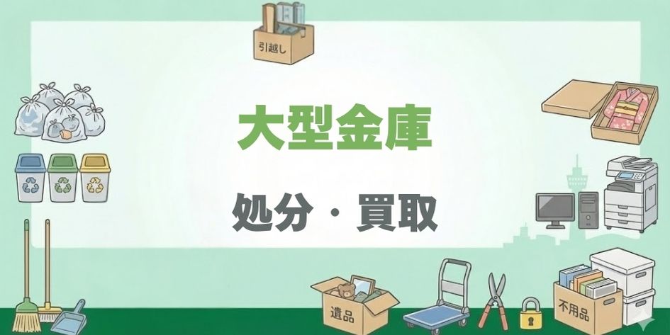大型金庫の処分は、重量物搬出に対応した不用品回収業者への依頼が最もスムーズです。見積もり時に金庫の重量・サイズ・設置場所・搬出経路を正確に伝えることで、適切な費用と作業内容を確認できます。